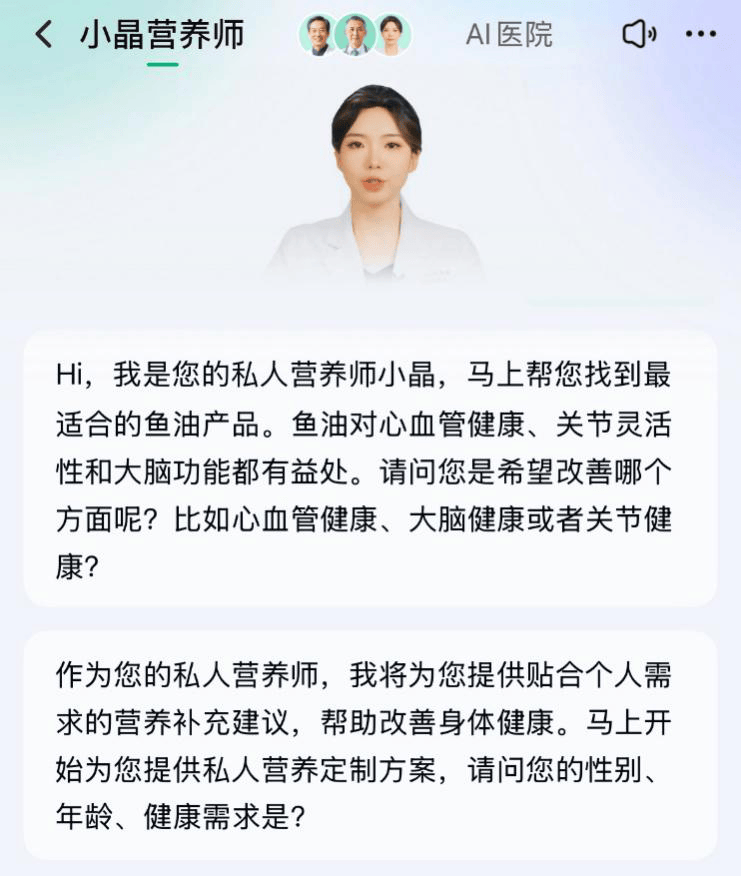 尤其是今年以来,AI医生、AI药师、AI营养师等“数字员工”全面上岗,凭借其客观、中立、7×24小时在线的特性,极大地降低了老年人的咨询门槛。他们可以毫无顾虑地提出各类健康疑问,获得及时的、详细的、科学的回复,无需再担心被误导或消费套路。